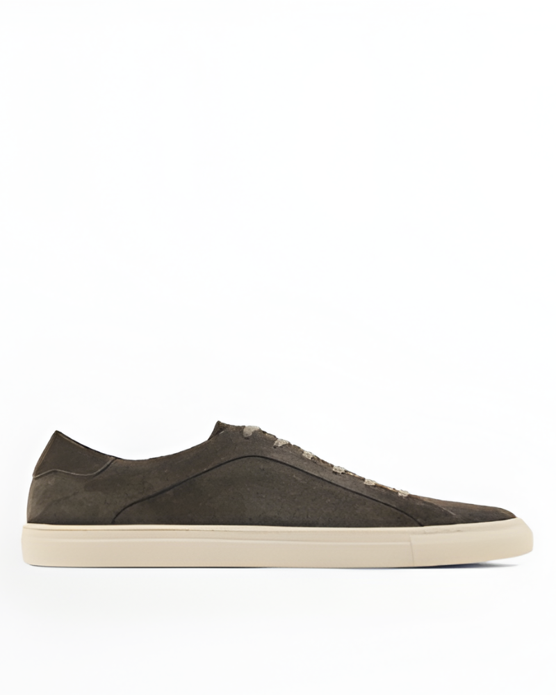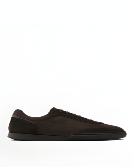 Split leather trainers with contrast soles DARK BRWON